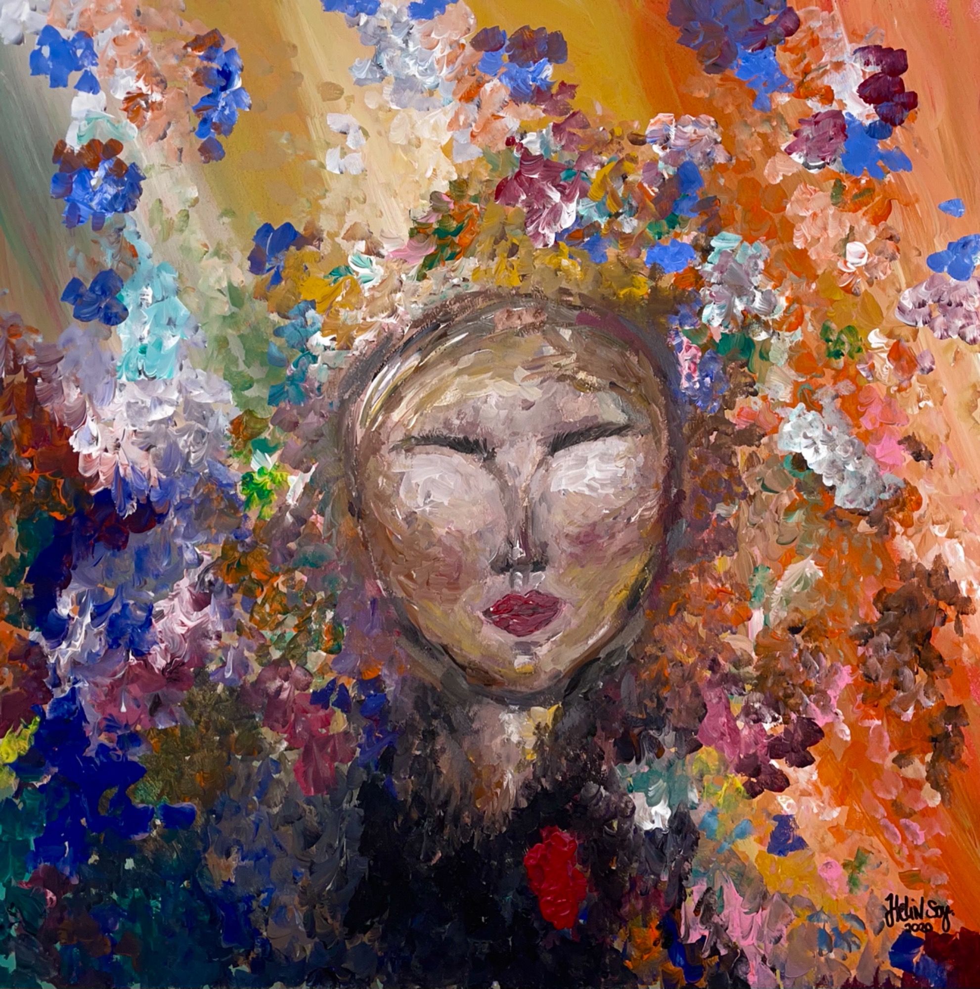 1,10m x 1,10m acrylic (structure) on printed canvas and Frame